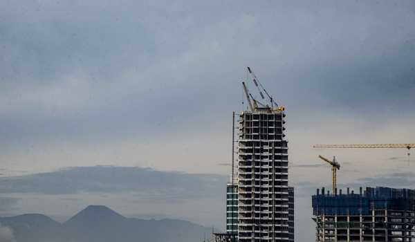 Suasana pada proyek pembangunan gedung bertingkat di Jakarta, Selasa (26/5/2020). Dinas Lingkungan Hidup (DLH) DKI Jakarta menyatakan bahwa kualitas udara di Jakarta pada momen Hari Raya Idulfitri atau lebaran tahun ini menjadi kondisi yang terbaik selama lima tahun terakhir seiring dengan penerapan Pembatasan Sosial Skala Besar (PSBB). ANTARA FOTO/Aprillio Akbar/foc.