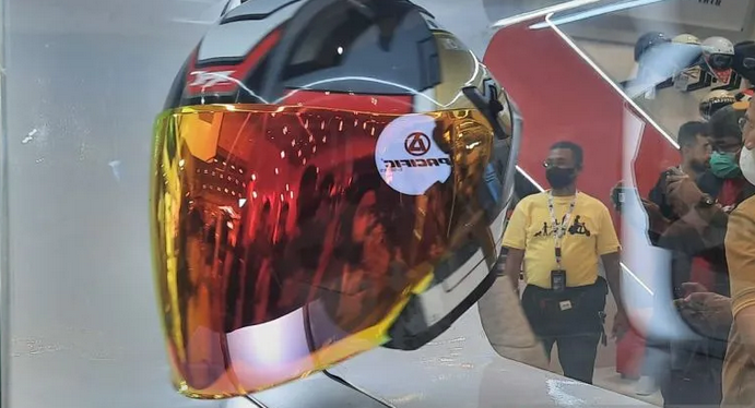 Pada kesempatan ini, dia juga menjelaskan bahwa helm terbaru ini juga sudah memiliki double visor yang berfungsi untuk mengurangi pantulan sinar UV matahari interior dengan busa yang lembut membuat kulit tetap nyaman,