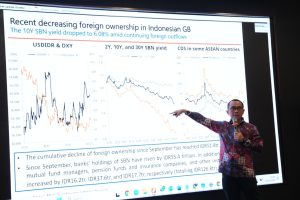 Dia menjelaskan koreksi pasar saham saat ini dipengaruhi perhatian pelaku pasar terhadap faktor makroekonomi global, dan domestik. Misalnya, peningkatan ketidakpastian global, lonjakan harga emas, dan arus modal asing keluar dari pasar obligasi Rp45,8 triliun pada September–Oktober. Meski begitu, sejak awal tahun pasar saham masih mencatat net buy asing.